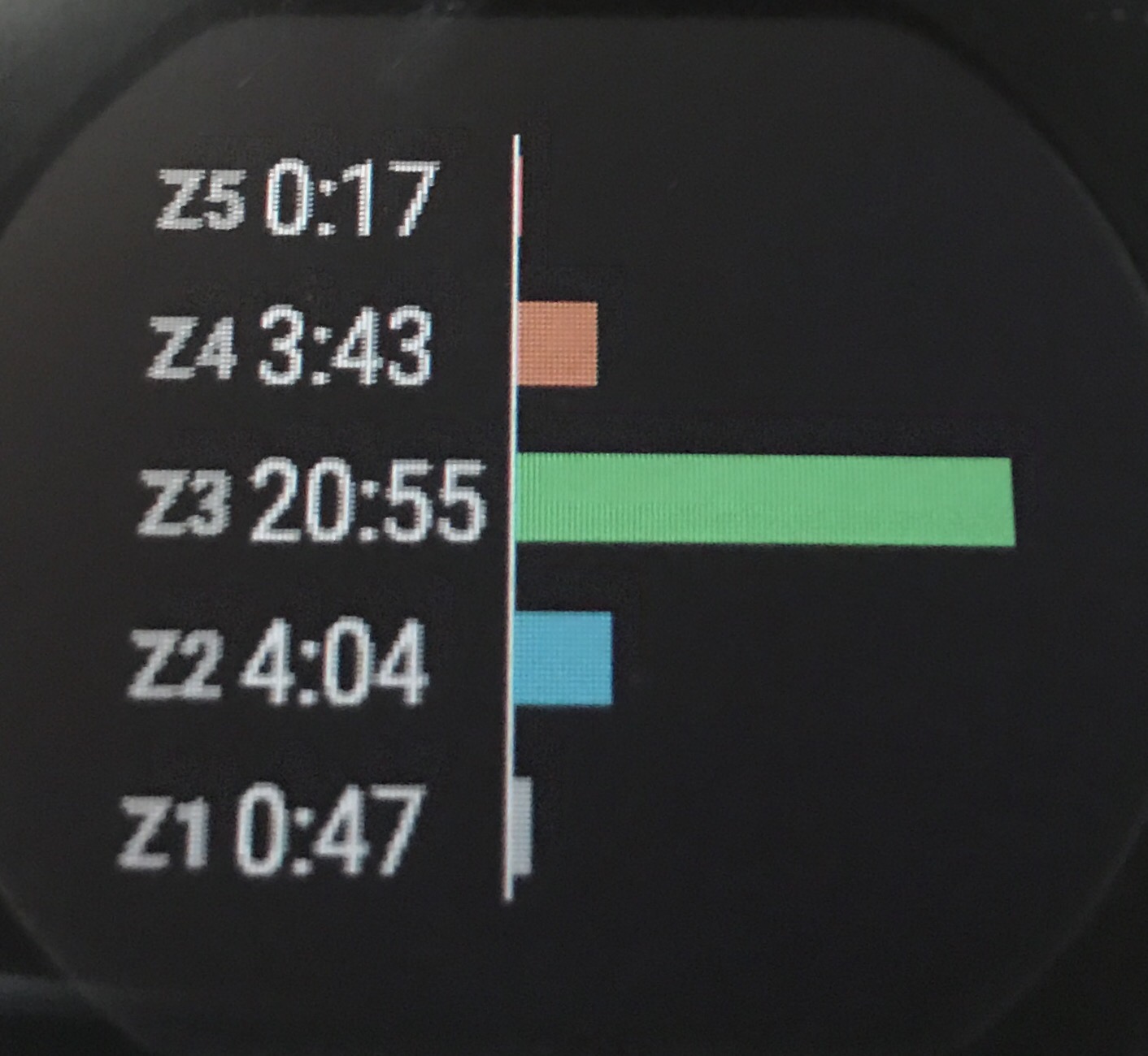 Went pretty well! Usually I’d keep around 60 RPM for recovery work like this and I found that 70 PRM for about the first 20+ minutes kept me in the zone and then I had to gradually slow down a bit to end around 65 PRM. The computer said 711 calories and 16.4 km, which is 0.3 km more than I have ever recorded for 30 minutes on the machine, according to my Beyond The Whiteboard logs. There was no problem holding that pace. Will be interesting to see where this goes. If I keep this up and improve, I should be able to go faster at the same heart rate.