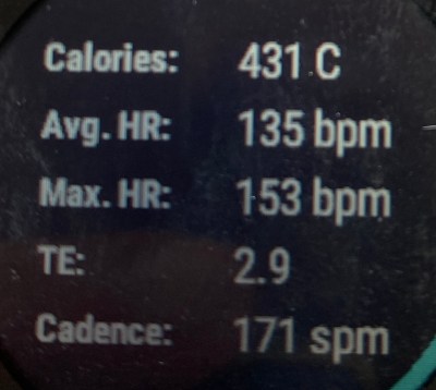 I honestly don’t feel that bad. Some days it seems to take the heart rate at a weird time that just throws off the formulas, because it said my resting heart rate was 48, which is much higher than my typical 38-40. Out in the garage at 3:30 today for a session that took 2 hours.
