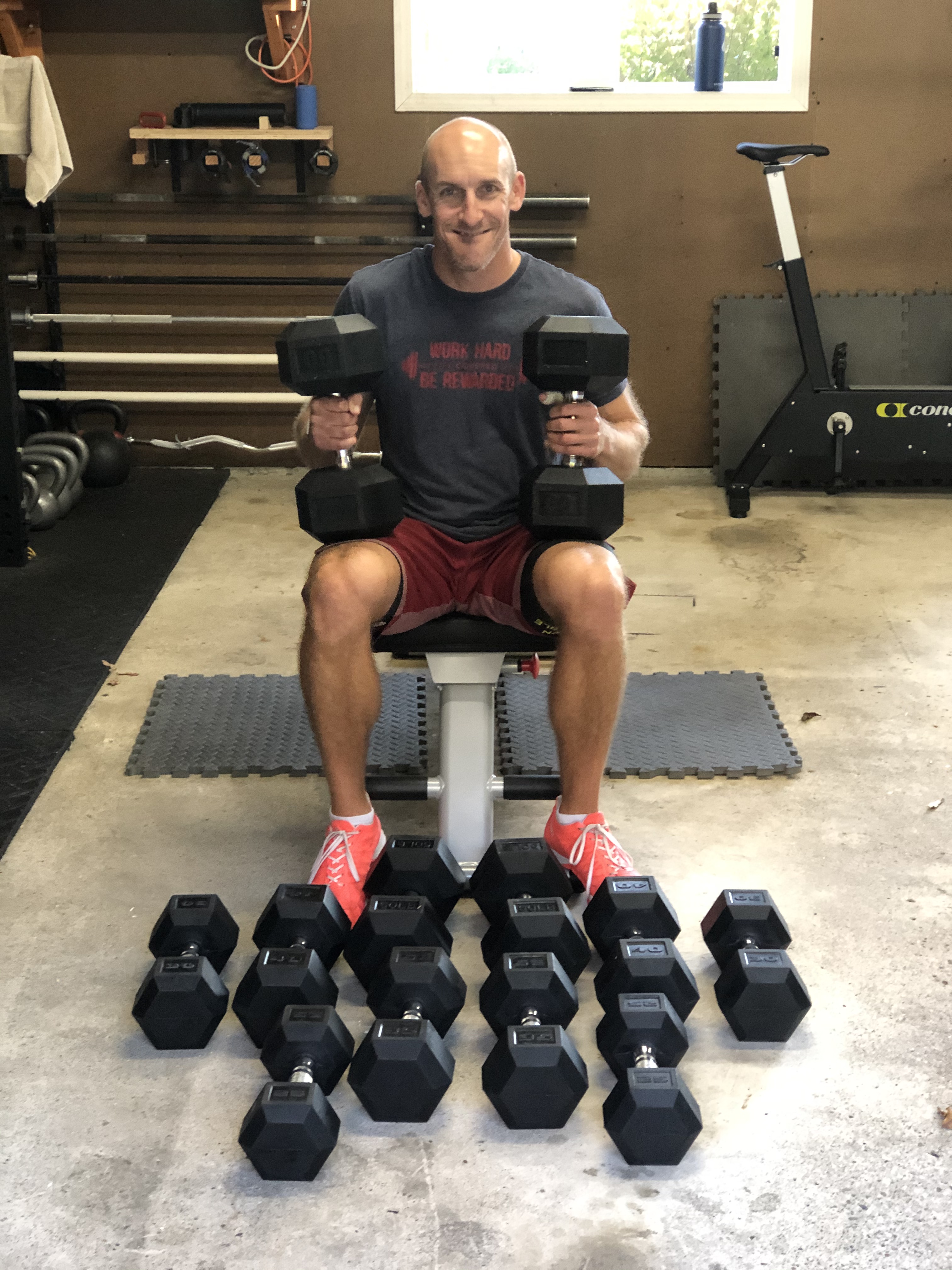 In the style of doing drop sets, but with prescribed rep counts for every set. Do the 12, pick up the next dumbbells, and right in to the next set until all sets are completed. I make a smart move skipping over the 45s. When I picked up the 40s they felt really light though and I busted out my reps. As I got towards the end of the 35s and through the finish it was a burn though.