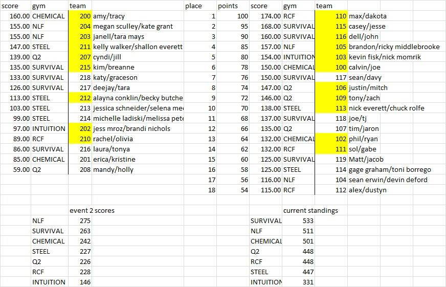 I probably could have done the Rx 115#, but I didn’t want to push my luck after heavier squats. Maybe a good decision though because the front squats got slow and I tried to be careful on every rep. As my squats got slower, I tried to pick up the pace on the burpees. I had 1:14 – 1:17 of rest every round.