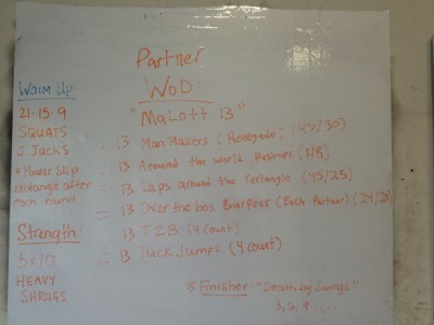Been a long time since doing man makers. If you’ve never done them, it’s a push-up on the dumbbells, a row with each arm in the plank position (helps to keep wide feet), jump/step feet up to hands, clean, and shoulder to overhead. I wasn’t fast with them, but never stopped and did all sets of sit-ups unbroken too. Finished in 12:54.