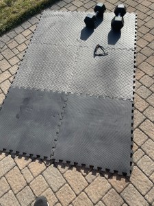 We both increased our weights this week. I did my squat jumps to the bench to protect my back. We finished in 34:18.